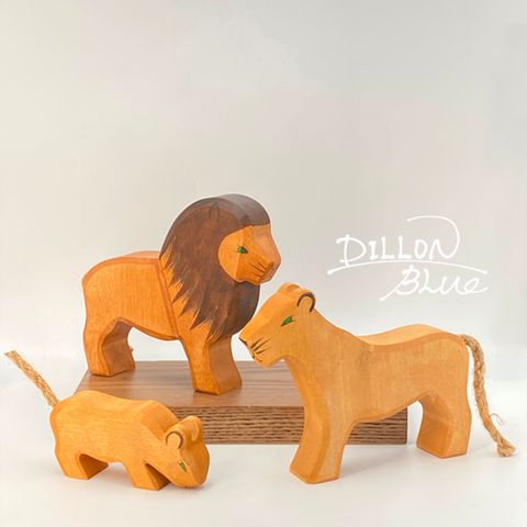 獅子一家 純手工 手繪木頭手作品 實木 森林動物 可愛動物玩具 兒童玩具 桌面擺飾 動物模型 木頭擺件